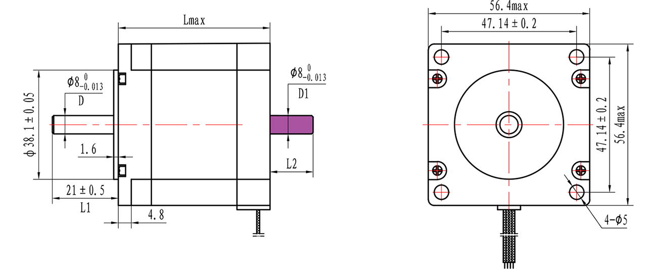 步距角精度: 5% 允許溫度: 80℃ max 環(huán)境溫度: -20℃ ~+50℃(無(wú)結冰) 絕緣等級: B 絕緣耐壓: AC 500V 1 Min 絕緣電阻: 100MΩ Min 500V DC 徑向跳動(dòng): 0.02mm Max (負載500g) 軸向間隙: 0.08m